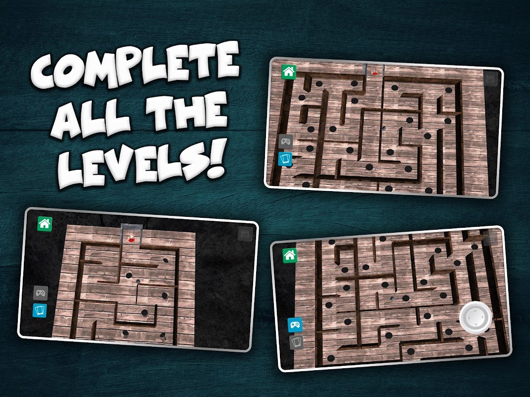 "Guida la palla in foro di uscita sul nostro gioco del labirinto classico 3D. Si può semplicemente inclinare il bordo di legno utilizzando il dispositivo o si può semplicemente scegliere l'opzione joystick. La palla deve entrare nel foro di uscita per completare la missione e di continuare a giocare su un altro livello. Siate cauti con i buchi neri e non cadere in! Scarica ora e godere della nostra 3d tilt labirinto gioco da tavolo. Ci sono 30 diversi livelli sul nostro gioco labirinto classico. Questa è una grande sfida per tutti! Un gioco di abilità e destrezza! Gioca con bellissimi effetti grafici 3D e la musica. Da non perdere il nostro gioco cervello divertente con la logica e la strategia.