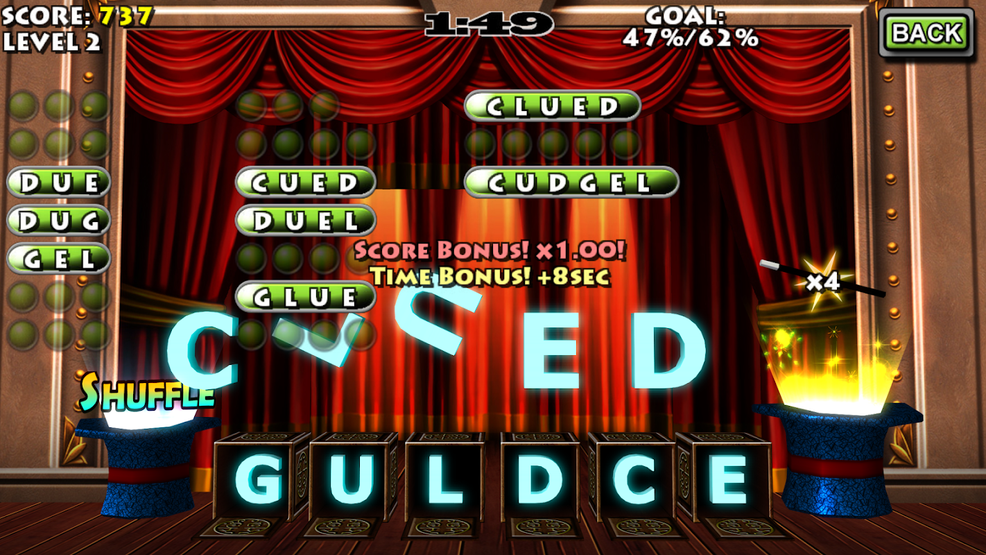 Conjure up some fun with 3D Magic Words! Reveal all the words that you can before time runs out. There are two modes of play, thousands of levels, time bonuses, and hints. Who will levitate to the top of the scoreboard? Ladies and gentlemen, children of all ages, you won't want to miss this addicting word game!