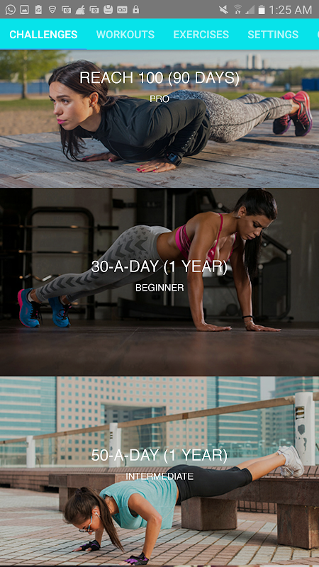 Ci sono diverse sfide per voi da scegliere per aiutarvi a raggiungere i vostri obiettivi di fitness. Le sfide hanno diversa lunghezza e gli obiettivi. Dite l'applicazione che cosa il vostro livello di forma fisica attuale è e personalizza la sfida appositamente per voi!