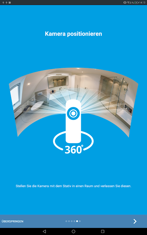L'app di scansione 3D consente di creare immagini a 360° di stanze reali. Per fare ciò, l'app si collega tramite WiFi all'hardware previsto a tale scopo (vedi www.immersight.com). È possibile creare gemelli digitali di stanze, ad esempio per la documentazione di cantiere, le ispezioni 3D o come mostra virtuale. L'acquisizione e la misurazione 3D delle stanze avviene dopo il caricamento sul cloud.