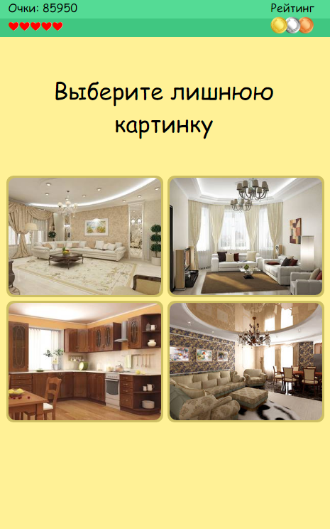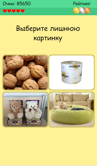 Необходимо выбрать картинку, которая выбивается из 3-х других по какому-то критерию.