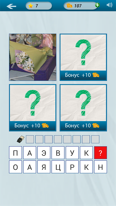 Интересная и увлекательная игра в которой вам предстоит отгадывать слова с помощью 4 фото. У вас есть возможность воспользоваться интересной подсказкой - открыть 5 картинку, а также много других подсказок. В этой игре вас ждет много интересных слов и красивых фото, а так же частые обновления в которых будут появляться новые уровни со словами. Также в игре вас ожидают ежедневные бонусы, которые увеличиваются с каждым днем. После отгадывания слова вас ждет сюрприз - интересные цитаты после каждого слова. Желаем вам приятного времяпровождения!