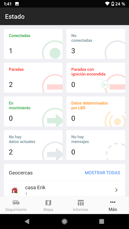 L'app mobile 4TRACK disponibile per analizzare e visualizzare informazioni sulle unità monitorate, con un'interfaccia amichevole e accessibile, con un design estetico e moderno. Nei moduli vedrai un panorama dei viaggi e delle fermate dei veicoli, con il percorso dello stesso. Le informazioni sul veicolo sono disponibili in modo molto intuitivo. Il controllo dei report e l'esecuzione dei comandi sono alcuni degli strumenti di cui dispone anche l'APP.