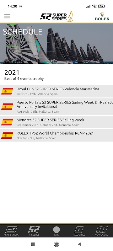 - Notizie e video: ricevi per primo i momenti salienti della gara e gli articoli di notizie. Accedi alla 52 SUPER SERIES da qualsiasi parte del mondo.