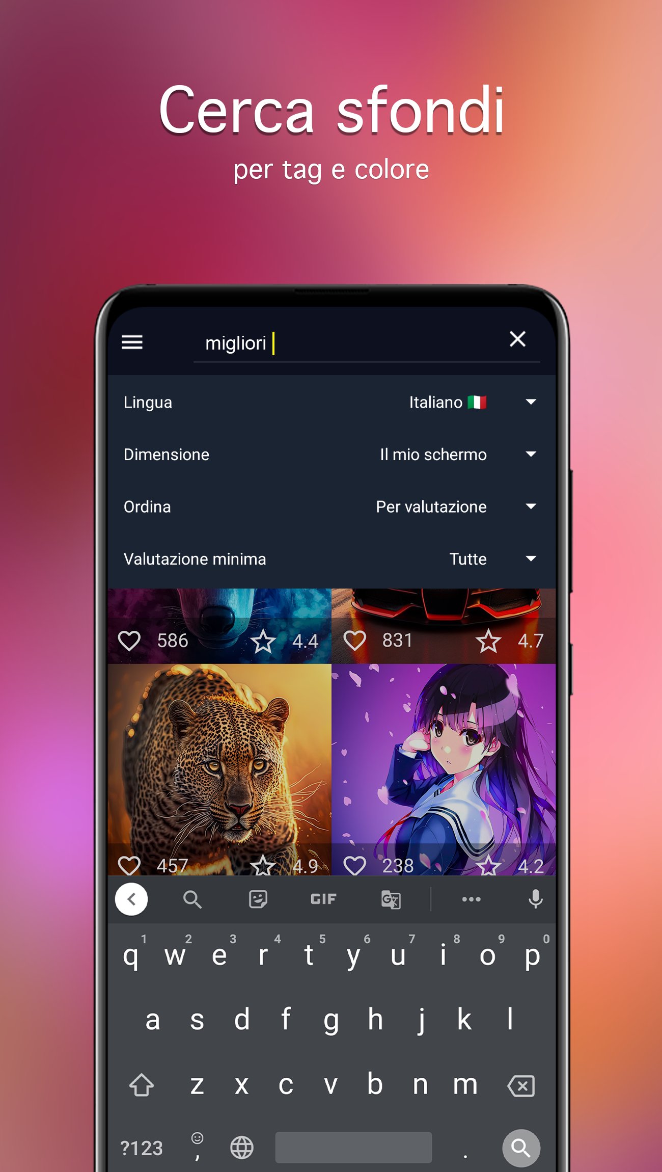 Sfondi 4K, cambio automatico e ricerca per colore in italiano.
