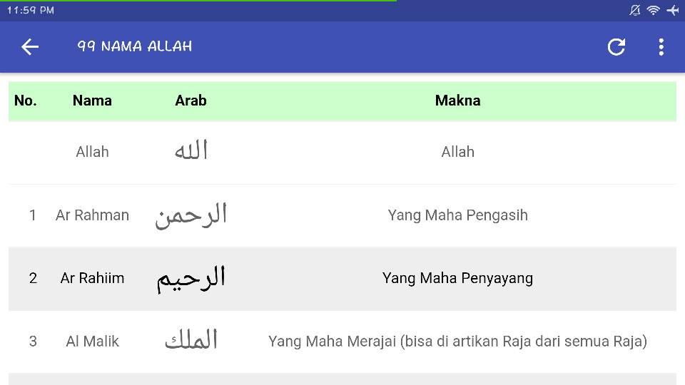 Aplikasi audio ini juga disertakan dengan teks 99 NAMA ALLAH beserta terjemahannya.