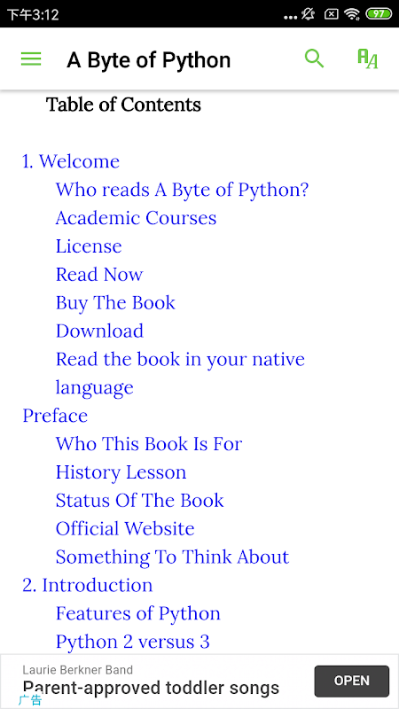 A Byte of Python" is a free book on programming using the Python language. It serves as a tutorial or guide to the Python language for a beginner audience. If all you know about computers is how to save text files, then this is the book for you. In Dec 2008, the book was updated for the Python 3.0 release (one of the first books to do so). But now, I have converted the book back for Python 2 language because readers would often get confused between the default Python 2 installed on their systems vs. Python 3 which they had to separately install and all the tooling, esp. editors would assume Python 2 as well. I had a hard time justifying why I had to aggravate readers and make them go through all this when the fact is that they can learn either one and it would be just as useful. So, Python 2 it is