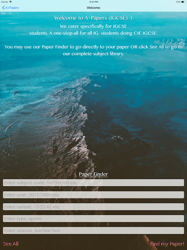 • A + Papers risolve il noioso compito di dover aprire Safari e poi andare su un sito Web IGCSE degli anni scorsi che ospita un sito Web e quindi cercare il loro soggetto e innumerevoli clic in seguito finalmente essere in grado di aprire il documento desiderato. Raggiunge lo stesso risultato ma in una frazione del tempo e con migliori interazioni dell'utente.