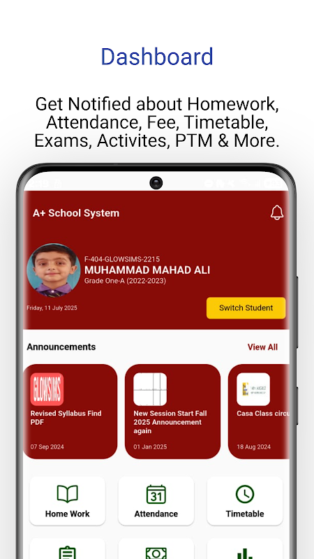 A+ School System è un sistema di gestione dell'apprendimento mobile intuitivo, progettato per aiutare gli studenti a raggiungere il successo accademico. Con A+ School System, gli studenti possono accedere e organizzare facilmente tutto il materiale didattico, i compiti e i voti in un'unica comoda posizione. L'app offre anche una varietà di potenti strumenti, tra cui notifiche in tempo reale, annunci, dettagli sulle tasse e resoconti degli esami, per aiutare gli studenti a studiare in modo più efficiente. Inoltre, A+ School System include funzionalità come i compiti e gli incarichi giornalieri. Scopri il futuro dell'istruzione con l'innovativo LMS mobile di A+ School System.