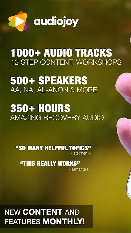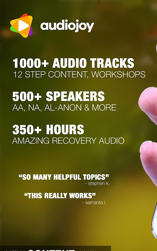 This app includes hundreds of hours of amazing content on drug abuse, recovery, alcoholics anonymous, and more. We add new stuff weekly. Here is a sample of audio content you will find: