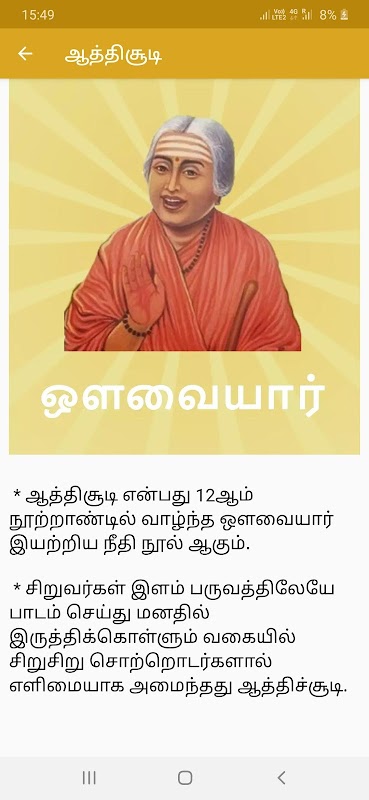 The Aathichudi application provides Aathichudi with audio,English translation and meanings which will be easy to understand.