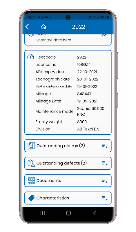 Visualizza documenti, danni e caratteristiche di ogni veicolo.