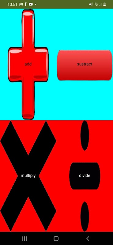 This app contains arithmetic operations like addition subtraction multiplication division