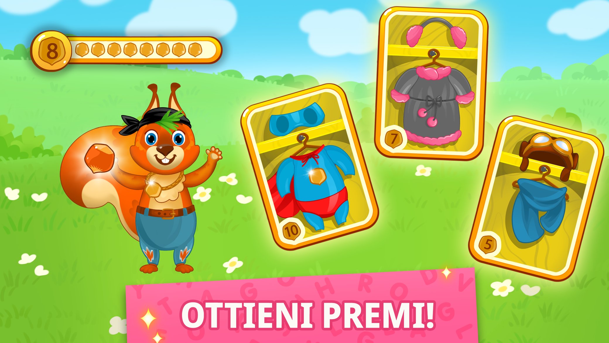 🤗 Allena la logica e l'attenzione con i giochi di apprendimento della scuola materna. Trova le lettere in posti inaspettati. Visita i vulcani e tuffati nelle acque, entra nella casa di una strega e arrampicati nel nido degli uccelli: questi sono i luoghi in cui devi trovare i personaggi.