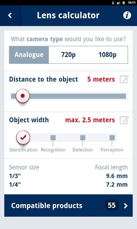 A fundamental decision for installing a camera is to choose and setup a suitable lens. The app will help you to find a suitable lens within seconds. In order to achieve this “ABUS Assistant” will provide you all necessary parameters: