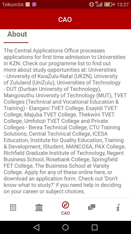 Uno sportello unico per la prima e la precedente ammissione alle istituzioni in across SA