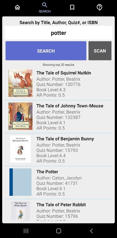 Cerca digitando manualmente il titolo del libro, l'autore, l'isbn o il quiz#. I risultati della ricerca sono limitati ai primi 20 risultati. Se non riesci a trovarlo nell'elenco, riprova, è lì.