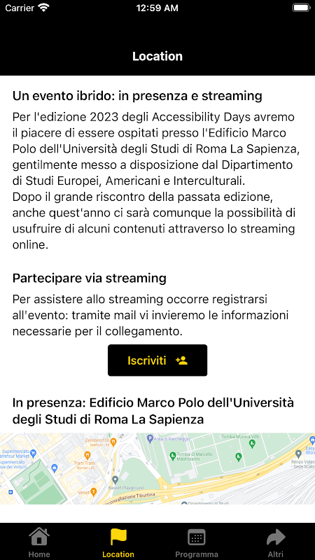 - Tutte le informazioni sulla sede e su come raggiungere l'evento Accessibility Days