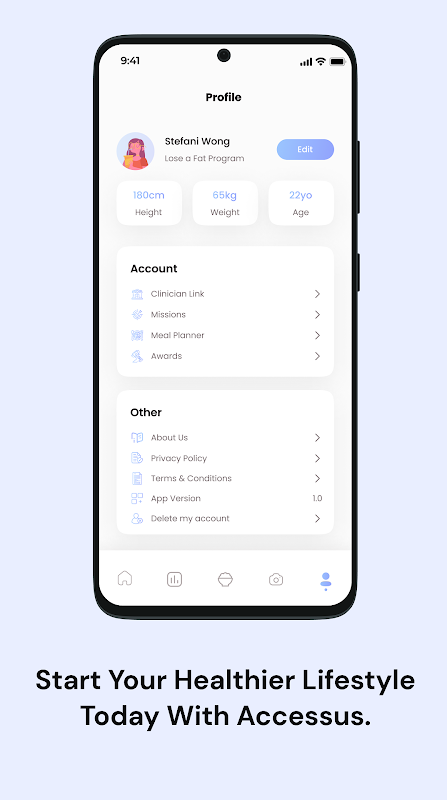 Accessus ti consente di registrare tutti gli aspetti della tua salute, tra cui l'assunzione di acqua, il peso, l'umore, i cicli del sonno e altro ancora. Condivide persino ricette perspicaci e preferenze dietetiche in modo da poter essere sicuri di ricevere i migliori consigli possibili. Con molte altre funzionalità come la pianificazione dei pasti e il feedback personalizzato del tuo allenatore, questa app rende più facile che mai tenere sotto controllo il tuo percorso di salute personale. Scaricalo oggi per connetterti con il tuo allenatore e iniziare il tuo viaggio nella registrazione degli alimenti.