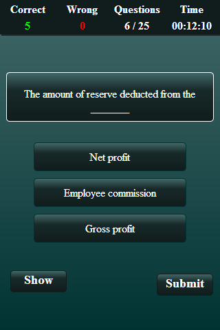 The application is very easy to use and has been designed very carefully keeping in mind the needs of the students. When a student/user makes a mistake the application indicates and also shows the correct answer. Take the Accounting tests repeatedly and analyze your improved results each time.