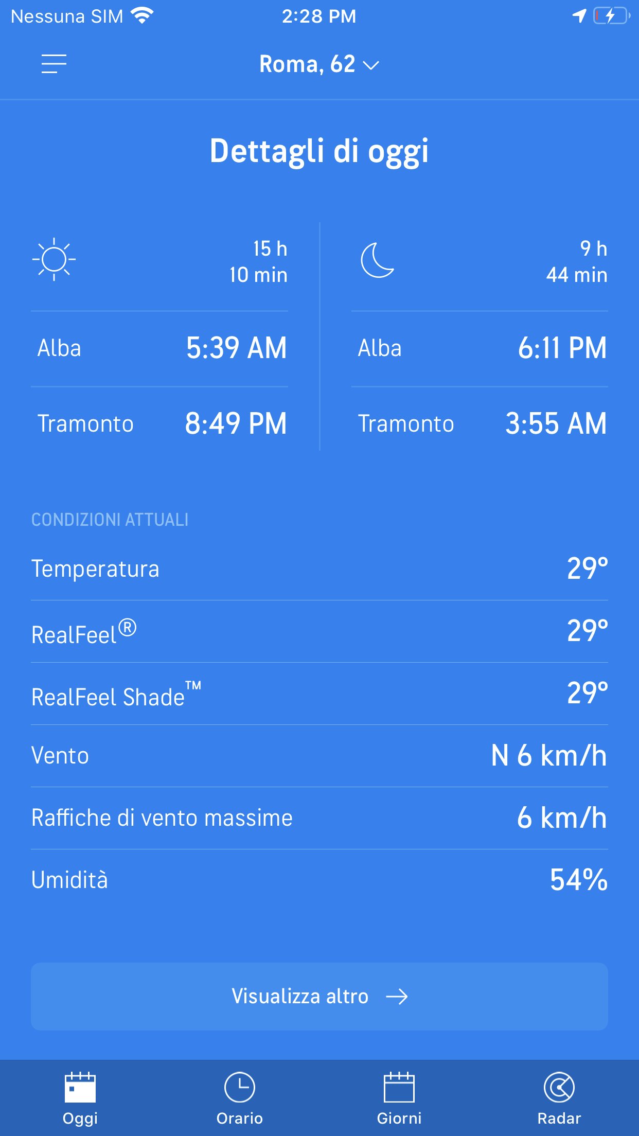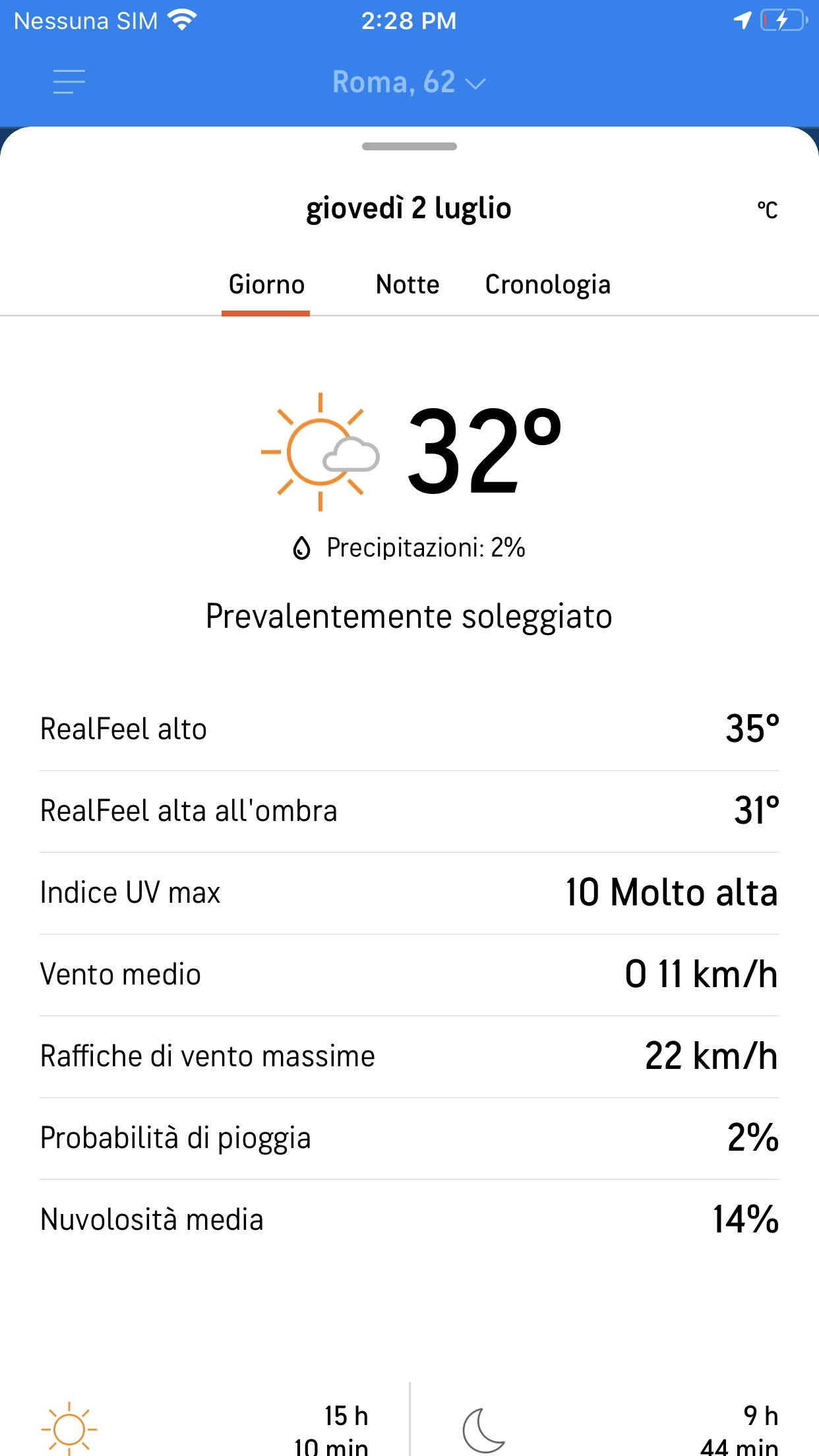 • Riepilogo e dati dettagliati sulle previsioni meteo