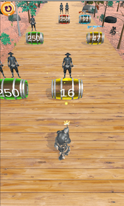 Devi spostare il giocatore da sinistra a destra e sparare ai barili per ottenere nuove armi.