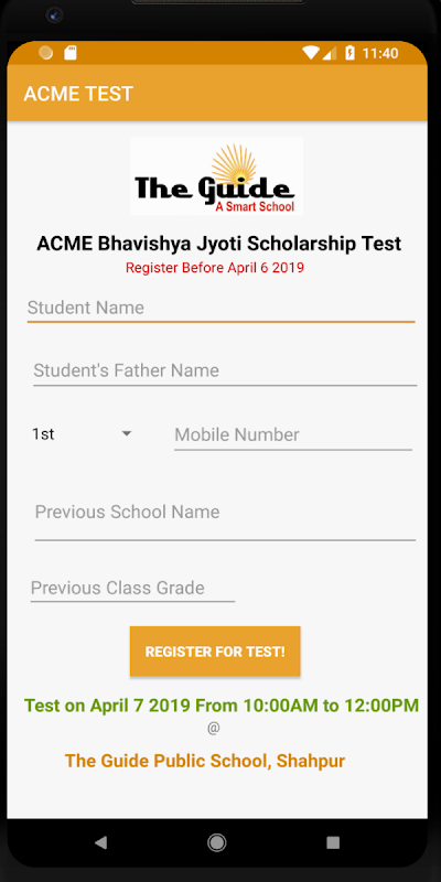 ACME Scholarship Test Registration to earn a scholarship at The Guide Public School Shahpur Distt. Kangra Himachal Pradesh.