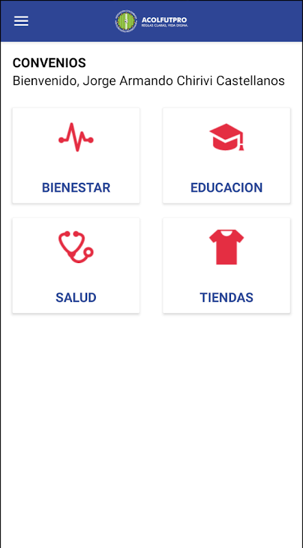 Nell'APP ufficiale dell'Associazione Colombiana dei Calciatori Professionisti (ACOLFUTPRO), puoi accedere come membro: