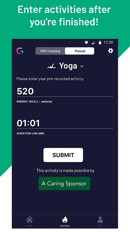 Per iniziare, scarica l'app e registra la tua prima attività, con il tracciamento GPS integrato o inserendo gli sforzi del tuo ultimo allenamento. Quindi condividi i tuoi risultati con i tuoi account sui social media e ispira i tuoi amici a fare del bene mentre sono attivi.