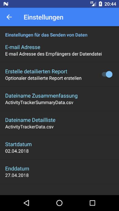 L'applicazione permette all'utente di catturare le varie attività. Un'analisi grafica (grafici a barre e grafico a torta) è possibile. I dati registrati possono essere inviati come file in formato CSV a un indirizzo e-mail.