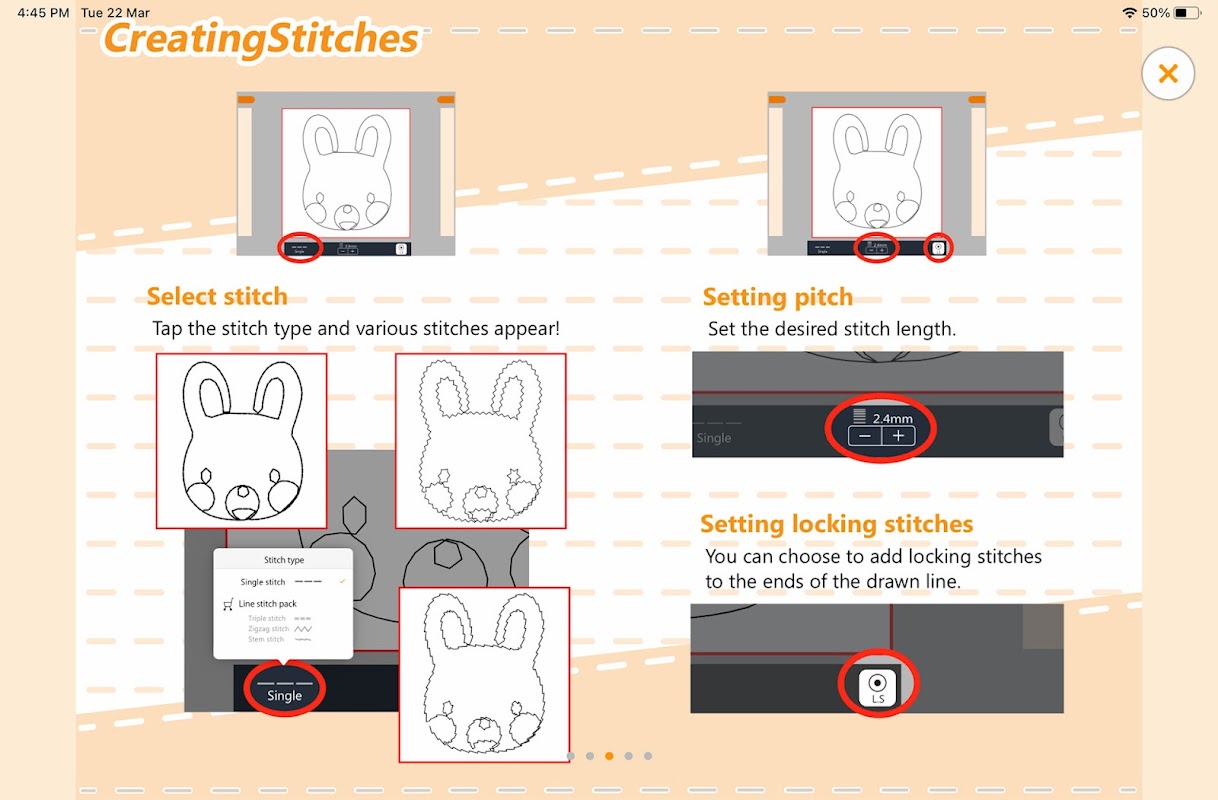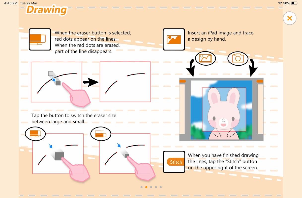 L'app AcuSketch consente di creare un ricamo tracciando sulla tela visualizzata sullo schermo del dispositivo mobile con il dito o uno stilo.