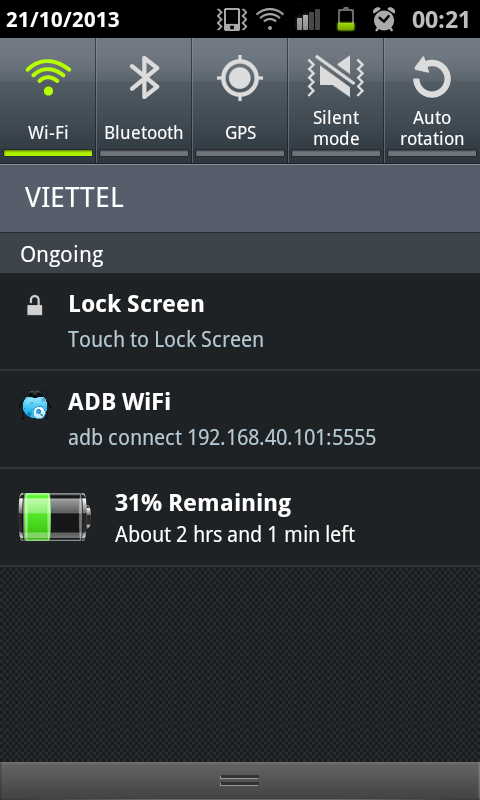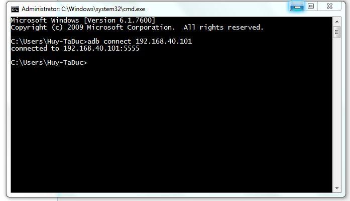 Eg: adb connect 192.168.189.101:5555