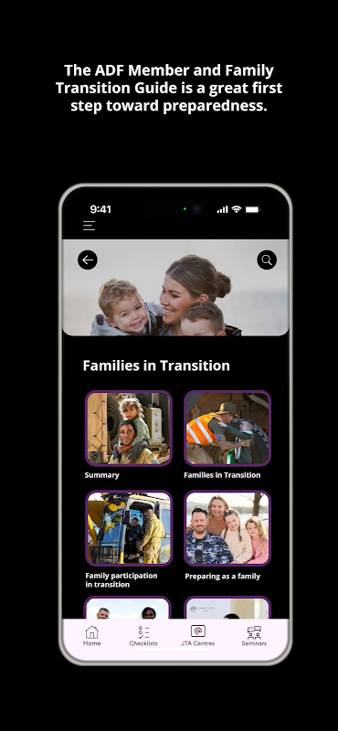 L'app Guida alla Transizione ADF è un'app gratuita del Dipartimento della Difesa che supporta il personale ADF, le famiglie, gli amici e le persone di supporto nella transizione dalla vita di servizio alla vita civile.
