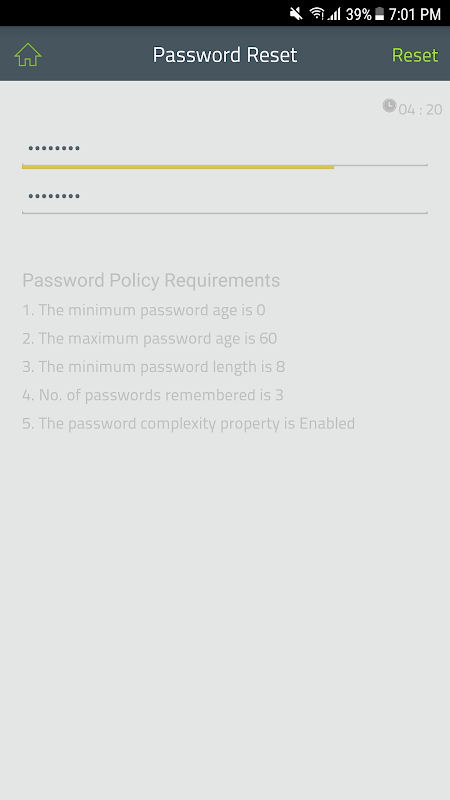Dichiarazione di non responsabilità: questa è un'app aziendale. NON funzionerà per utenti domestici o e-mail private come Gmail, Hotmail, Yahoo, ecc. Se l'organizzazione utilizza ManageEngine ADSelfService Plus, è possibile utilizzare questa app per reimpostare la password dell'account Windows Active Directory aziendale. Sebbene Zoho (la società dietro ManageEngine) abbia pubblicato questa app, non raccogliamo né abbiamo accesso a nessuna informazione trasmessa da questa app al server ADSelfService Plus installato nella tua organizzazione.