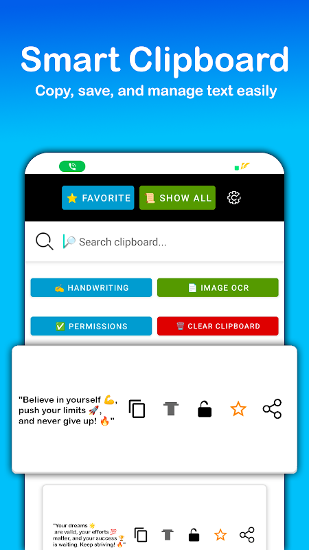Gestione Appunti rende il copia-incolla più veloce, più intelligente e più efficiente. Installalo ora e sperimenta la gestione fluida del testo sul tuo dispositivo Android! 🚀