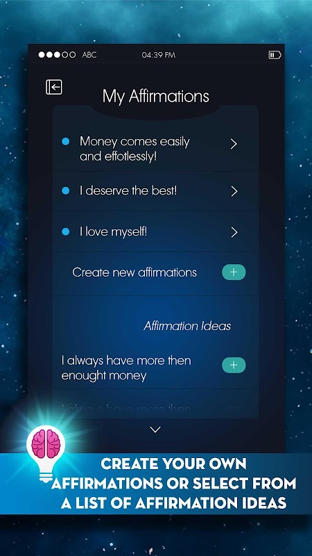 È sufficiente impostare il proprio elenco di affermazioni e ricevere promemoria per tutto il giorno a ripetere le vostre affermazioni all'interno della 'Affermazione Zone'.