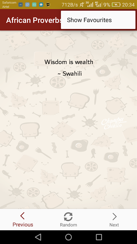 The proverbs in the app have been carefully selected from the best of African culture. Included in the app are Ethiopian Proverbs, Kenyan Proverbs, Swahili Proverbs, Nigerian Proverbs, Malian Proverbs, Somali Proverbs, Kanuri Proverbs, Senegalese Proverbs, Ashanti People of Ghana, Kikuyu, Kaonde, Madagascar Proverbs and many more.