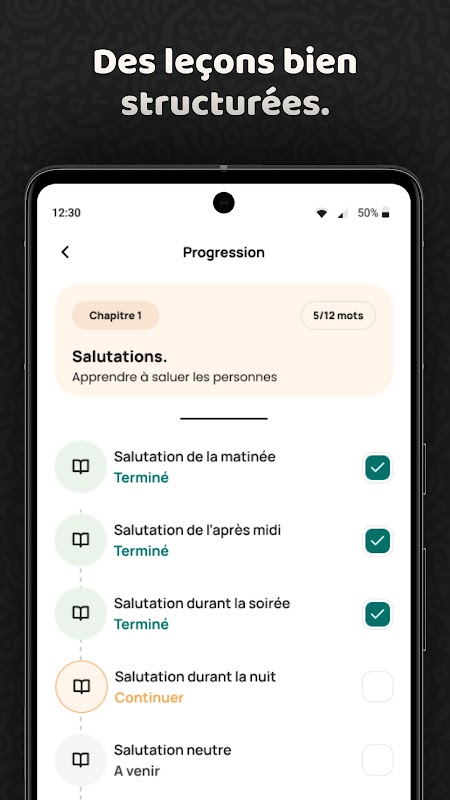 Monitoraggio dei progressi personalizzato: monitora i tuoi progressi attraverso lezioni e livelli per vedere le tue competenze linguistiche migliorare nel tempo. AfroLingo offre funzionalità di monitoraggio personalizzate per aiutarti a identificare i tuoi punti di forza e le aree di miglioramento.