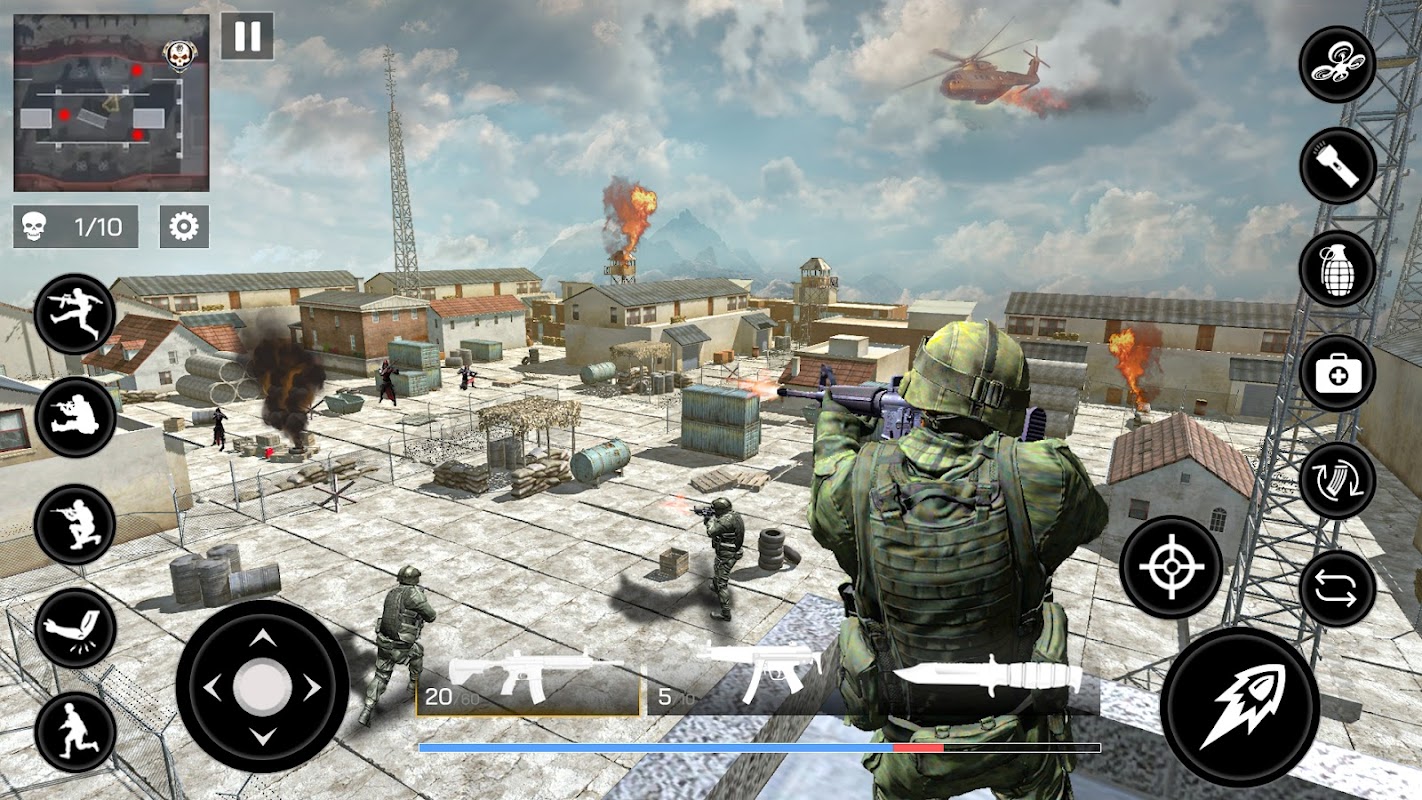 In this free shooting game you will be the game changer for the modern fps world. You will enter the hideouts of terrorists with an evil mindset and have to save the hostages from the terrorists in this elite army shooting game offline. You don't need to worry about the upcoming challenges as you will be geared up with all the essential weapons, shields and armor for a real commando shooting game. If you accomplish the terrorists' territory and save the hostages then you will become a specialized commando and will go for more crucial and challenging missions to get more famous and get bigger rewards as a war game commander.