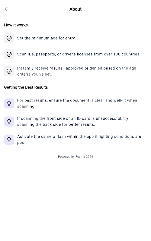 Agify è una soluzione di verifica dell'età progettata per attività come bar, discoteche, ristoranti ed eventi. Agify scansiona e verifica rapidamente gli ID di oltre 100 paesi, garantendo conformità e gestione degli ingressi senza soluzione di continuità.