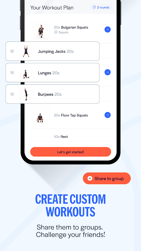 Condividi i tuoi allenamenti in un gruppo per allenarti con amici, clienti, studenti o chiunque altro, sia che tu sia qui per perdere peso o per metterti in forma. Questo è ottimo per il coinvolgimento della comunità!