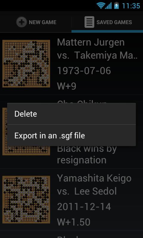 Keep supporting us by buying the paid version. It comes pre-loaded with a set of famous Go games (from the Kisei title) and supports SGF files containing collection of games.