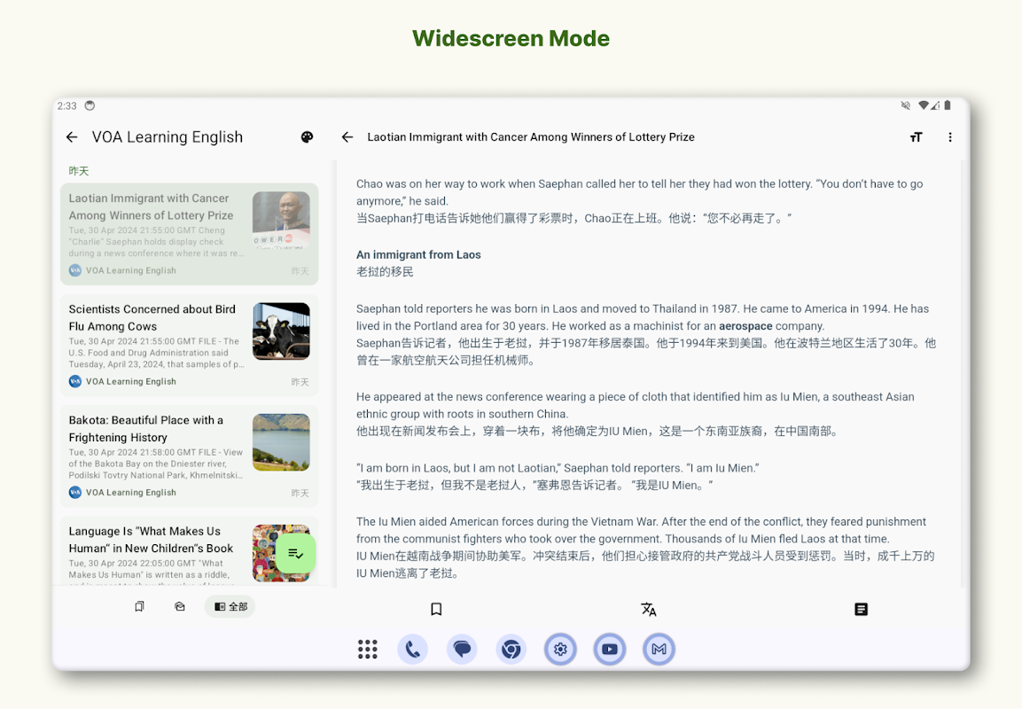 - Modalità widescreen: sfrutta al massimo il tuo tablet o dispositivo a schermo grande con una visualizzazione affiancata di elenchi di articoli e visualizzazioni di lettura, che ti consentono di sfogliare, leggere e passare da una storia all'altra senza problemi.