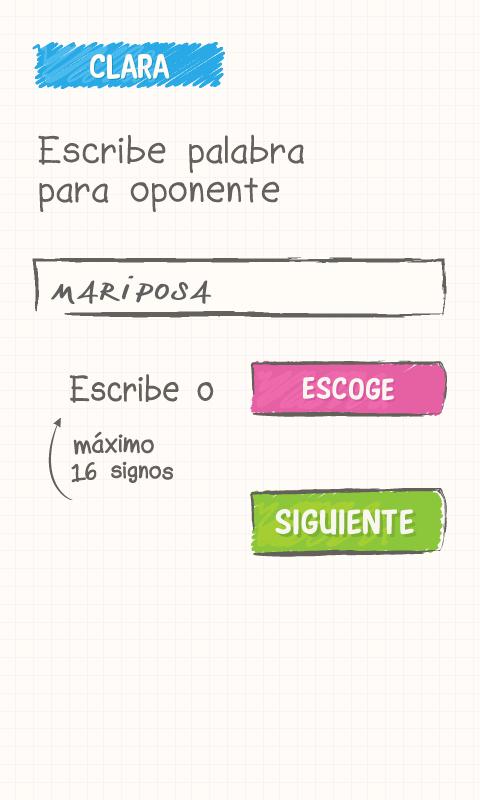 Juega con un amigo. Piensa una palabra para tu oponente. Si no se te ocurre ninguna palabra, genera una al azar. Puedes generar palabras aleatorias hasta que encuentres una que te guste. Gana el jugador que adivine más palabras.