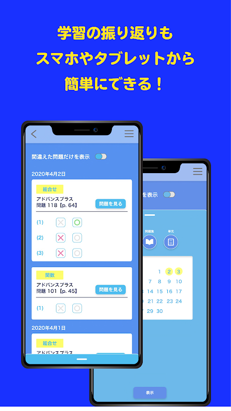 Puoi controllare i problemi che hai imparato finora e i risultati dal tuo smartphone o tablet. Anche se non hai un libro di domande cartaceo a portata di mano, puoi gestire il tuo apprendimento in qualsiasi momento.
