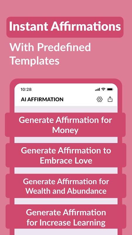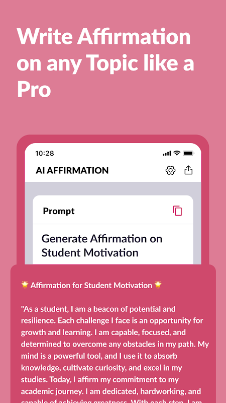 Trasforma i tuoi pensieri, trasforma la tua vita! Scarica subito l'app AI Affirmation Generator e intraprendi un viaggio di positività, successo e benessere. La tua dose quotidiana di ispirazione ti aspetta! 🚀✨