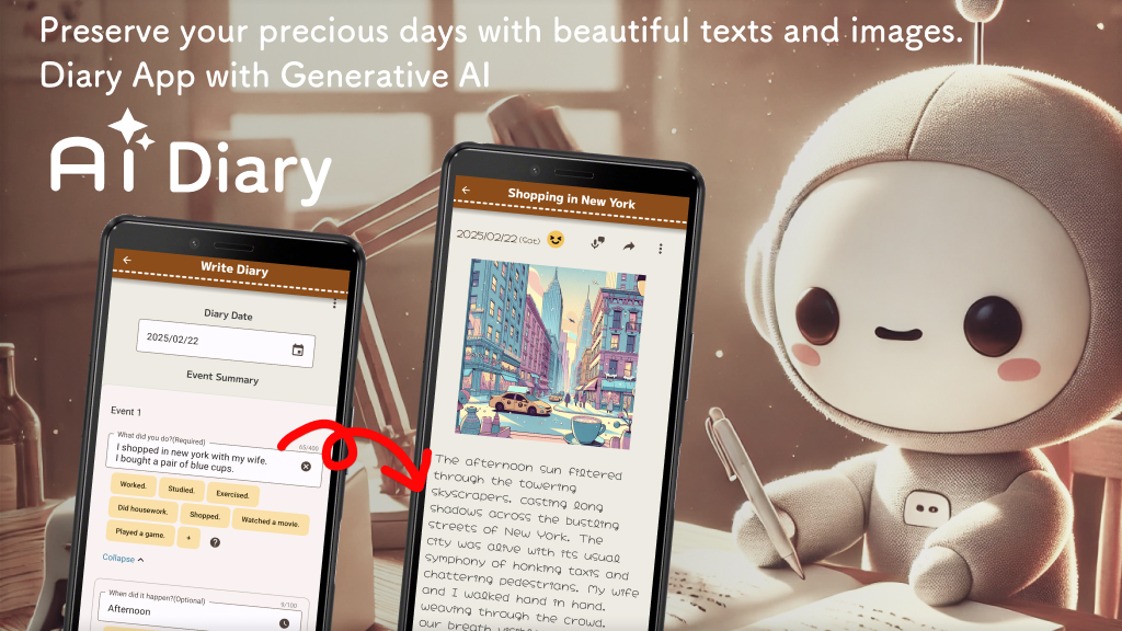 Poiché l'IA completa le tue annotazioni giornaliere del diario come il lavoro di uno scrittore professionista, puoi imparare naturalmente il talento per scrivere frasi belle.