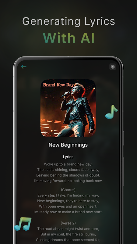 L'app AI Lyrics è il tuo compagno ideale per creare testi eccezionali senza sforzo. Progettata per cantautori, musicisti e menti creative, questa app sfrutta l'intelligenza artificiale avanzata per generare e perfezionare testi di qualsiasi genere.