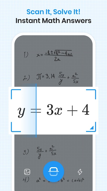 1. Scansiona e risolvi con facilità: apri l'app e punta la fotocamera su qualsiasi equazione scritta a mano o stampata. Lo scannerizzeremo immediatamente e ti forniremo la risposta senza bisogno di digitare!