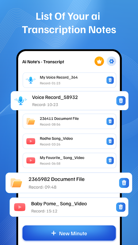 AI Notes & Transcript è un'app versatile progettata per tradurre qualsiasi file audio in formato testo, supportando più lingue. AI Audio Transcribe può registrare istantaneamente l'audio all'interno dell'app o caricare file audio esistenti dal tuo dispositivo per una trascrizione rapida. Inoltre, l'app AI Audio Translation consente la trascrizione dei collegamenti, rendendo ancora più conveniente convertire il parlato in testo senza sforzo. Che si tratti di una riunione, una conferenza o una conversazione, Transcribe Speech to Texts garantisce trascrizioni ad alta precisione in diverse lingue, rendendolo uno strumento essenziale per professionisti, studenti e creatori di contenuti.